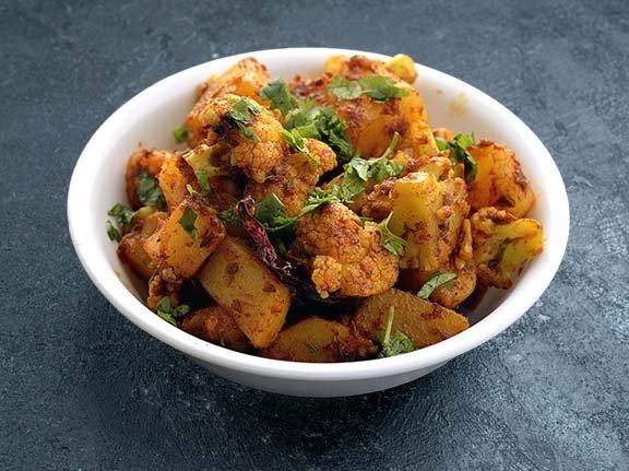 Cauliflower and potatoes cooked in a blend of tomato & Cumin flavor curry sauce.