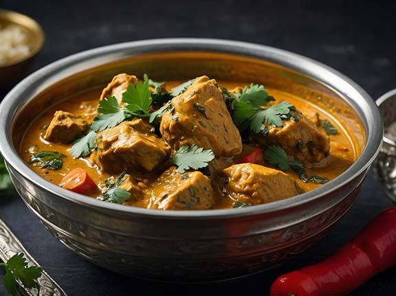 Cubes of chicken, pepper, tomato and onion are blended in brown onion & gravy.