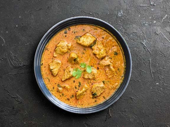 Lamb meat cooked in a creamy curry sauce.