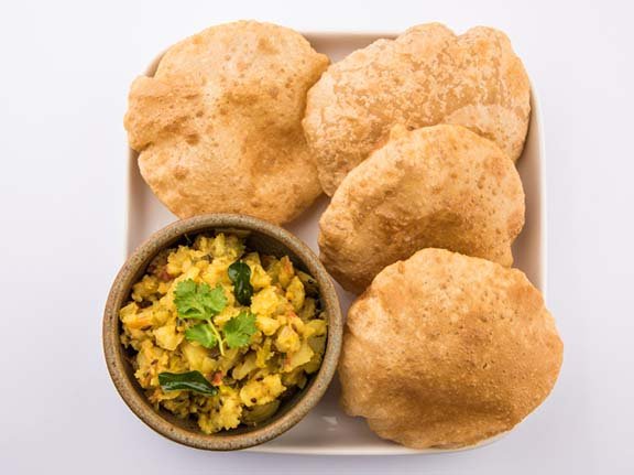 Whole wheat bread deep fried and served with potato bhaji.